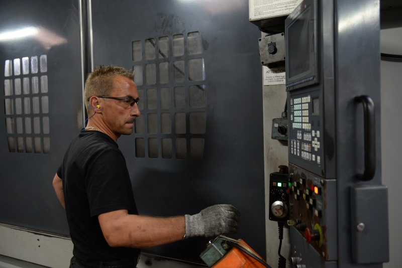 Les futures lames commencent par être extraites des tôles d'acier semi-allié, par deux centres de découpage laser. Des presses mécaniques et un balancier de forge de 400 tonnes couplé à une chauffeuse par induction poinçonnent et plient à chaud les lames. Ensuite les couteaux seront usinés par cinq centres d'usinage à commandes numériques.